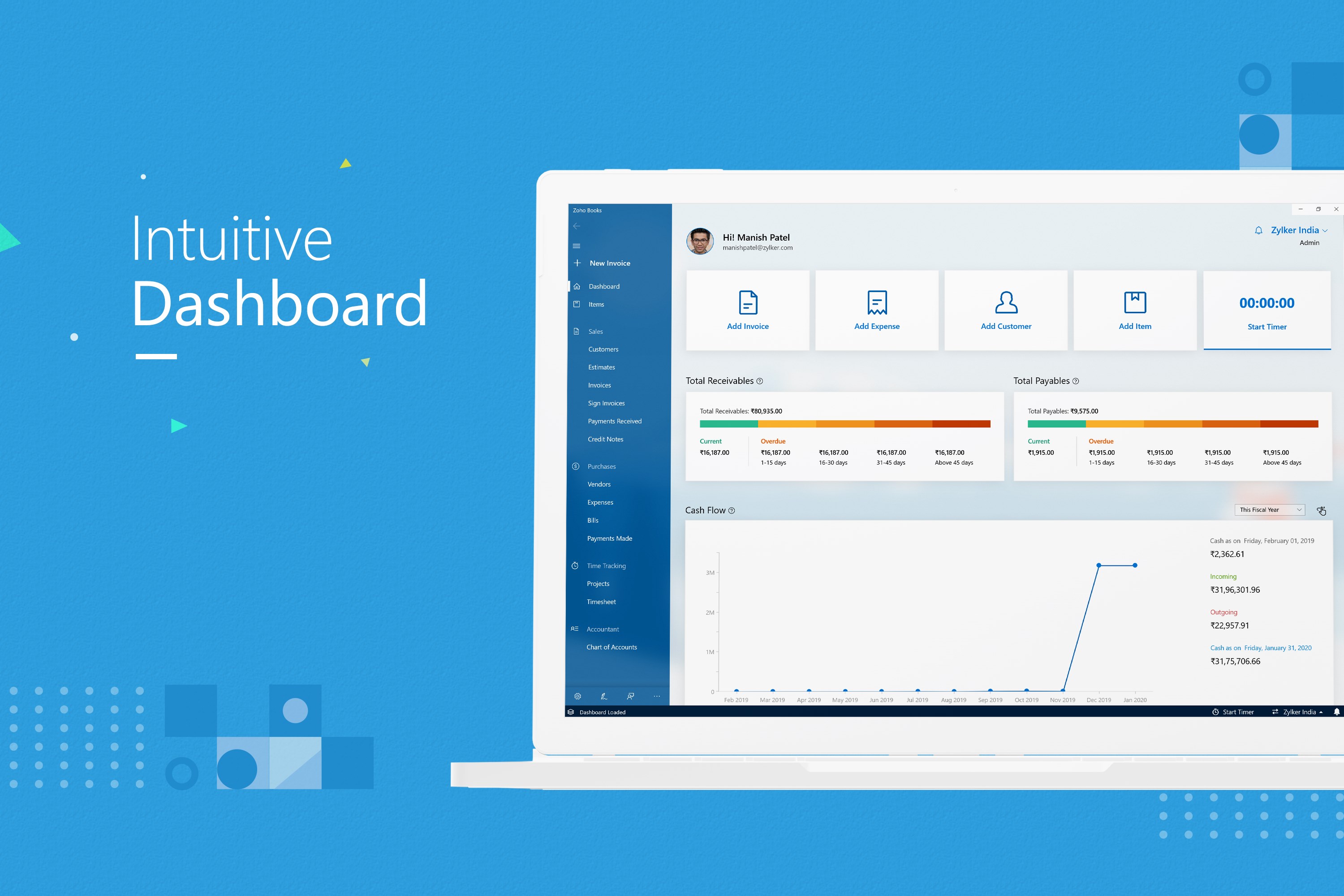 Everything is just perfect about zoho books the best thing is that this complete accounting software is cloud based.